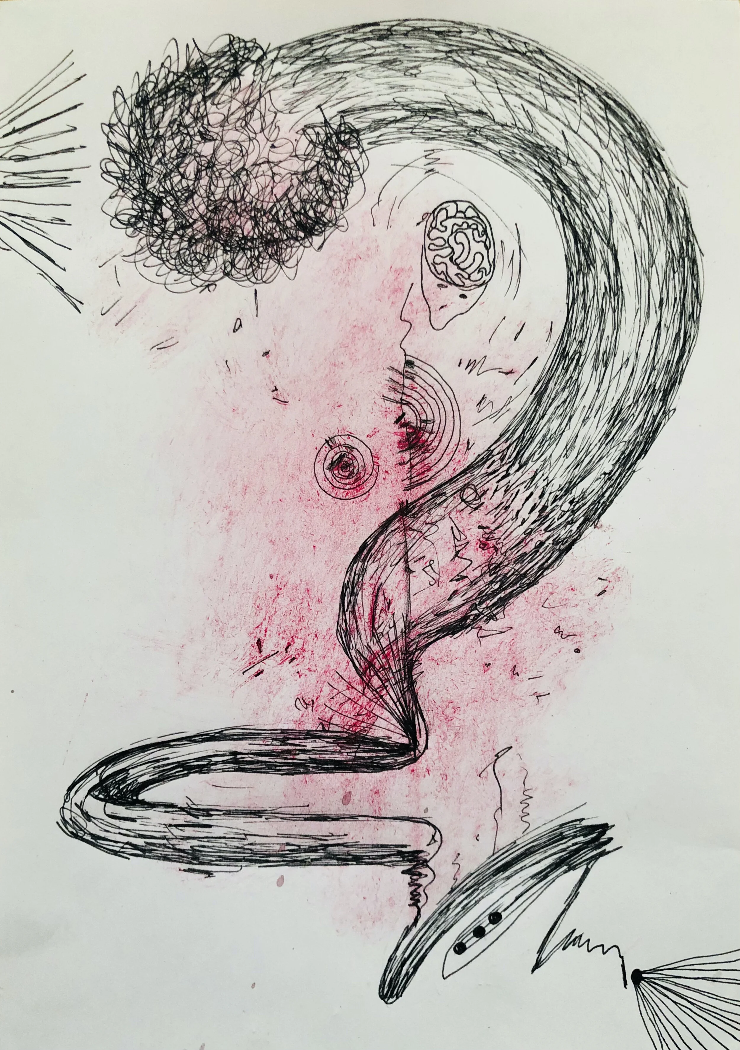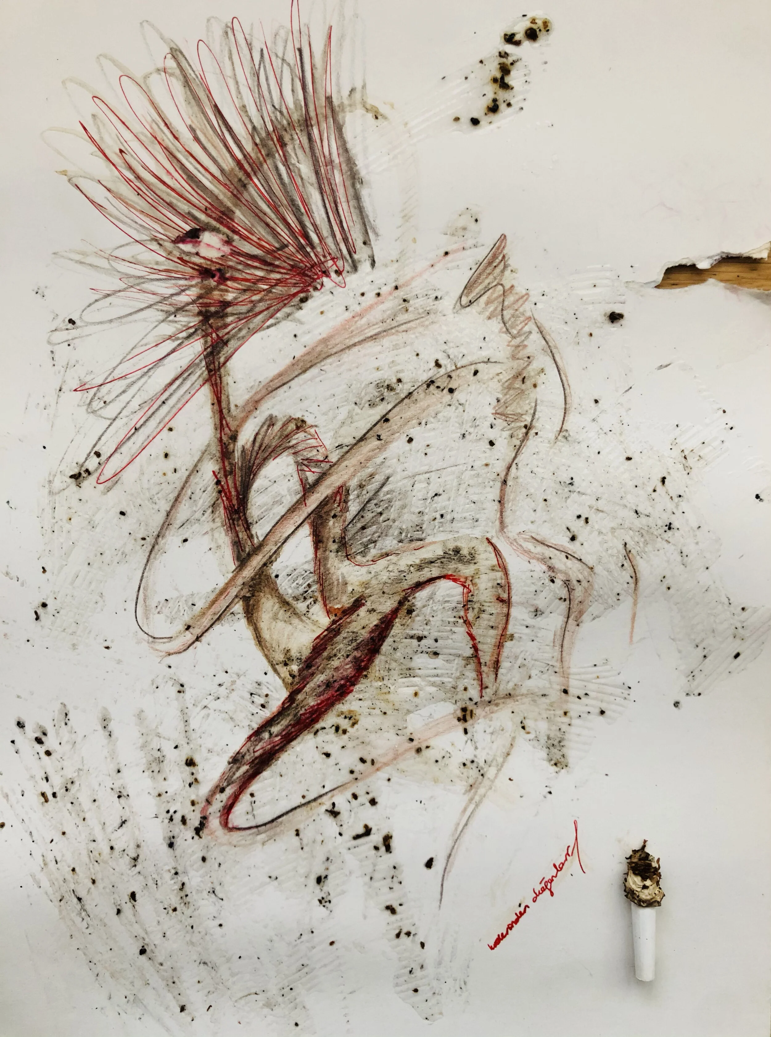 Using drawing as a tool for self discovery, healing, and getting inspiration (başlıklar sayfası gibi) for future work and for the Lab and Work section. Rather than focusing on a cohesive aesethics, style, idea or a theme: this process is somewhat different in which there are no established rules, boundaries and limitations. In life we are imposed to so much confinement both from our surrounding and most harshly from ourself that this process aims to create a safe zone, by demolishing all the established norms . In this space creating does not come from the known like the idea of beauty or the use of materials, but rather all comes from the unknown. The object of focus is not about the end product but about the process and the realizations that come through. During this subconscious manifestation: materials, forms, processes and actions reveal hidden mysteries. These mysteries both positive and negative not only reveal themselves through art but they also get transformed by it. Besides the personal realization and transformation aspect, I meticulously try to preserve this process as free zone to be able to discover what I cannot otherwise. These discoveries then become a starting point for new collections, studies, and concepts. and might lead to a deeper focus on the Lab and Work section.